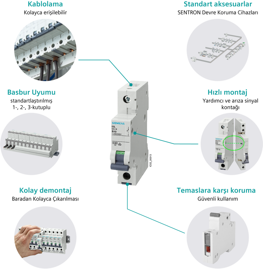 Siemens’ in 5SL otamatik sigortalarının her bir boyutu fonksiyonellik ön plana alınarak tasarlanmıştır. Otomatlarda yer alan baraların yerleşimi oldukça düzenlidir. Bu şekilde anahtarlı otomatik sigortaların hızlı ve sağlıklı bir şekilde beslenmesini sağlanır. El ile kullanılan ray tutucu kolayca raya yerleştirmeye ve raydan çıkarmaya sağlar. Zaman kazandıran hızlı sabitleme sistemi ile 5SL otomatik sigortalar kolayca montaj yapılabiliriz. 5SL otomatik sigortanın arka bölgesine müşterek bara takılır. Besleme hattının bağlantısı müşterek bara önünde gerçekleştirilir. Bu bağlantının her zaman net bir şekilde görülmesini sağlar. Ray tutucu yardımı ile 5SL otomatik sigortalar kısa sürede ve kolay bir şekilde montaj bağlantısından sökülebilir.